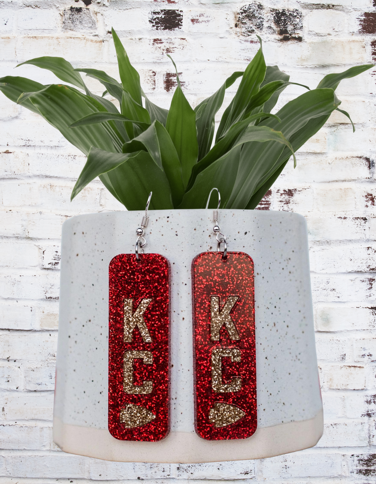 Show off your Kansas City pride in style with these 2" Glitter Acrylic KC Dangle Earrings! Featuring a bold KC design with a stunning glitter finish, these dangle earrings are the perfect accessory for game day, celebrating your team, or simply adding some sparkle to your look.