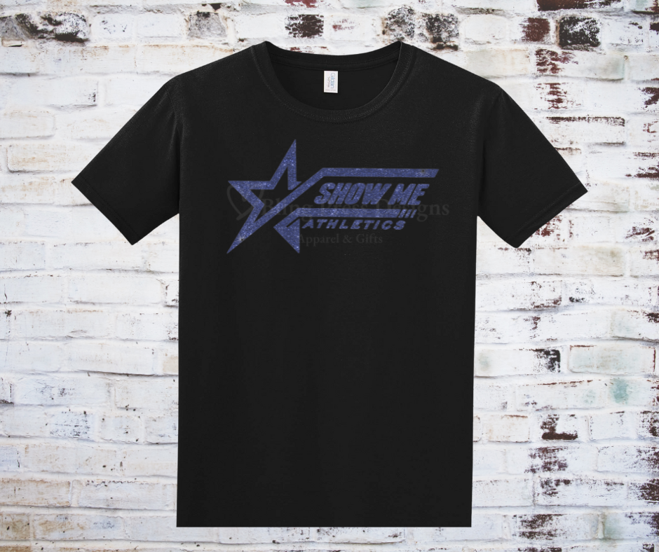Glitter Logo Show Me Tees are perfect for competition season. Wear alone or layer under your favorite fleece or flannel. The glitter logo stands out boldly, showcasing your support for Show Me Athletics while adding a bit of shimmer to your look. Perfect for athletes or fans who want to combine performance and style effortlessly.