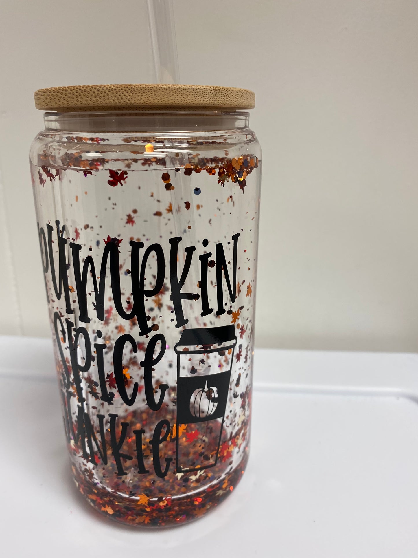 Pumpkin Spice Snow Globe Glass Can Tumbler